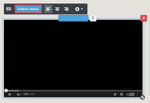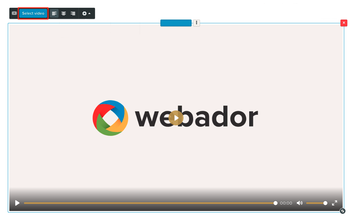 Klicka på videoelementet och klicka sedan på den blå knappen Välj video i det grå verktygsfältet.