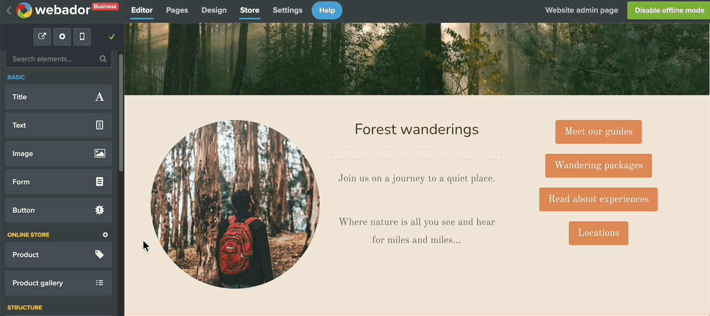 ⚠ Obs: Alla Webador-Webbplatser har en "responsiv design". Detta innebär att Webbplatsen anpassar sig till storleken på skärmen den visas på. Detta gör att kolumner visas under varandra i mobilvyn. Lyckligtvis kan du enkelt optimera mobilvyn.